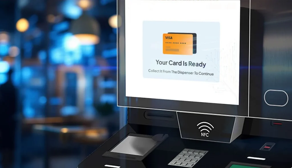 Видача картки через кіоск самообслуговування — це простий і кроковий процес. Клієнт починає з перевірки своєї особи, зазвичай за допомогою ID-картки, номера телефону або QR-коду. Потім він обирає тип потрібної картки, наприклад, банківську картку, SIM-картку чи ID. Кіоск самообслуговування миттєво друкує і видає картку. У деяких випадках клієнта можуть попросити підтвердити або ввести додаткову інформацію під час процедури